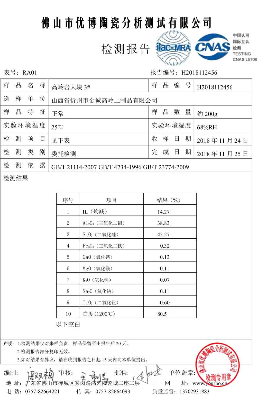 煅燒高嶺土砂料